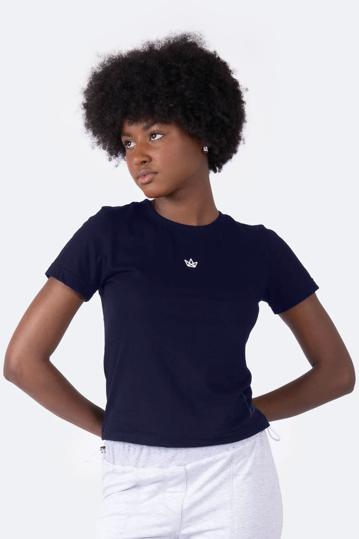 Made for an ideal fit, the Crowned Queen Cropped Tee sits right above the waistband, with a sleek cut. The simple crown logo is a minimalistic touch to the solid black tee. With such a classic style, this top can be paired with almost any bottoms. It can also be layered with your favorite CHICK Zip-Up Hoodie.