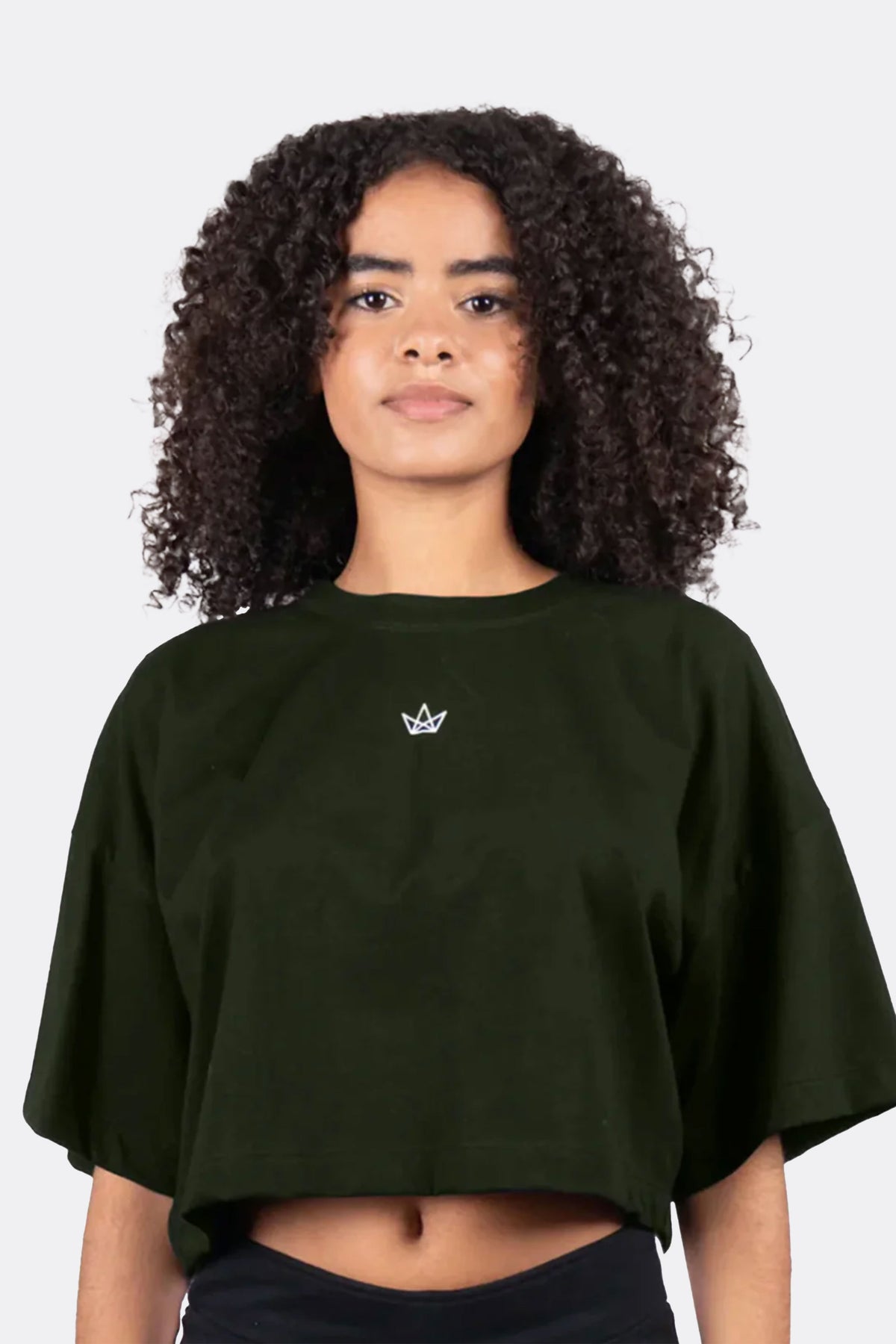For a boxier, looser fit of the Crowned Queen Cropped Tee, opt for this version instead. The short sleeves cut off at a longer length and the bottom hem is wider, providing a more powerful stature. The royal crown logo is still flaunted front and center, because it's alright to brag over what you’ve earned.